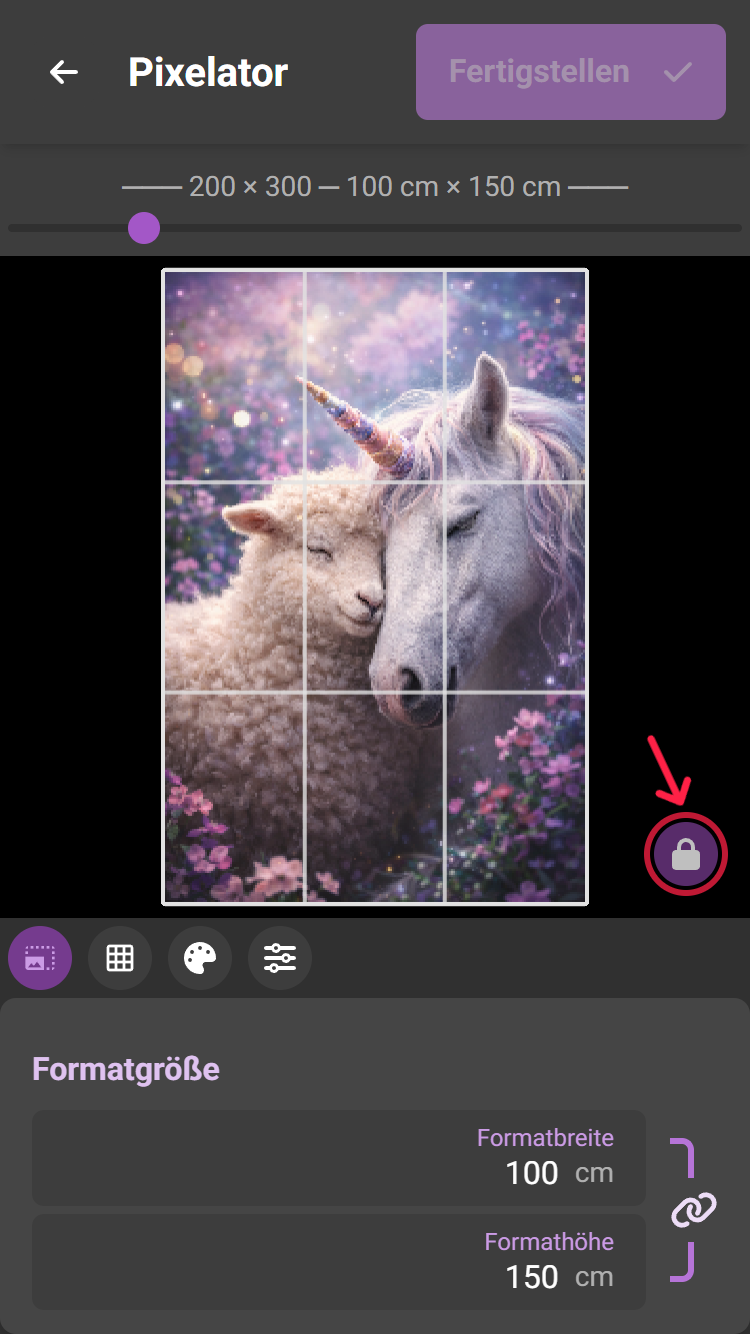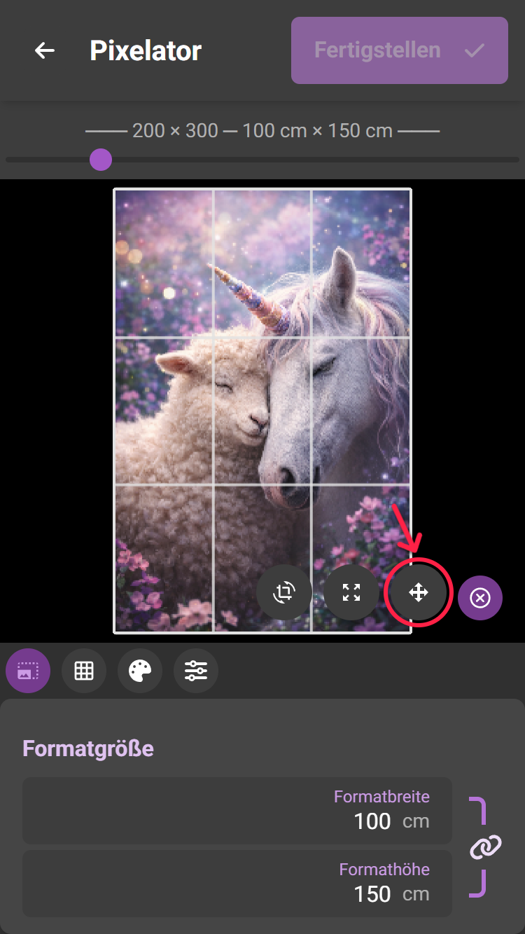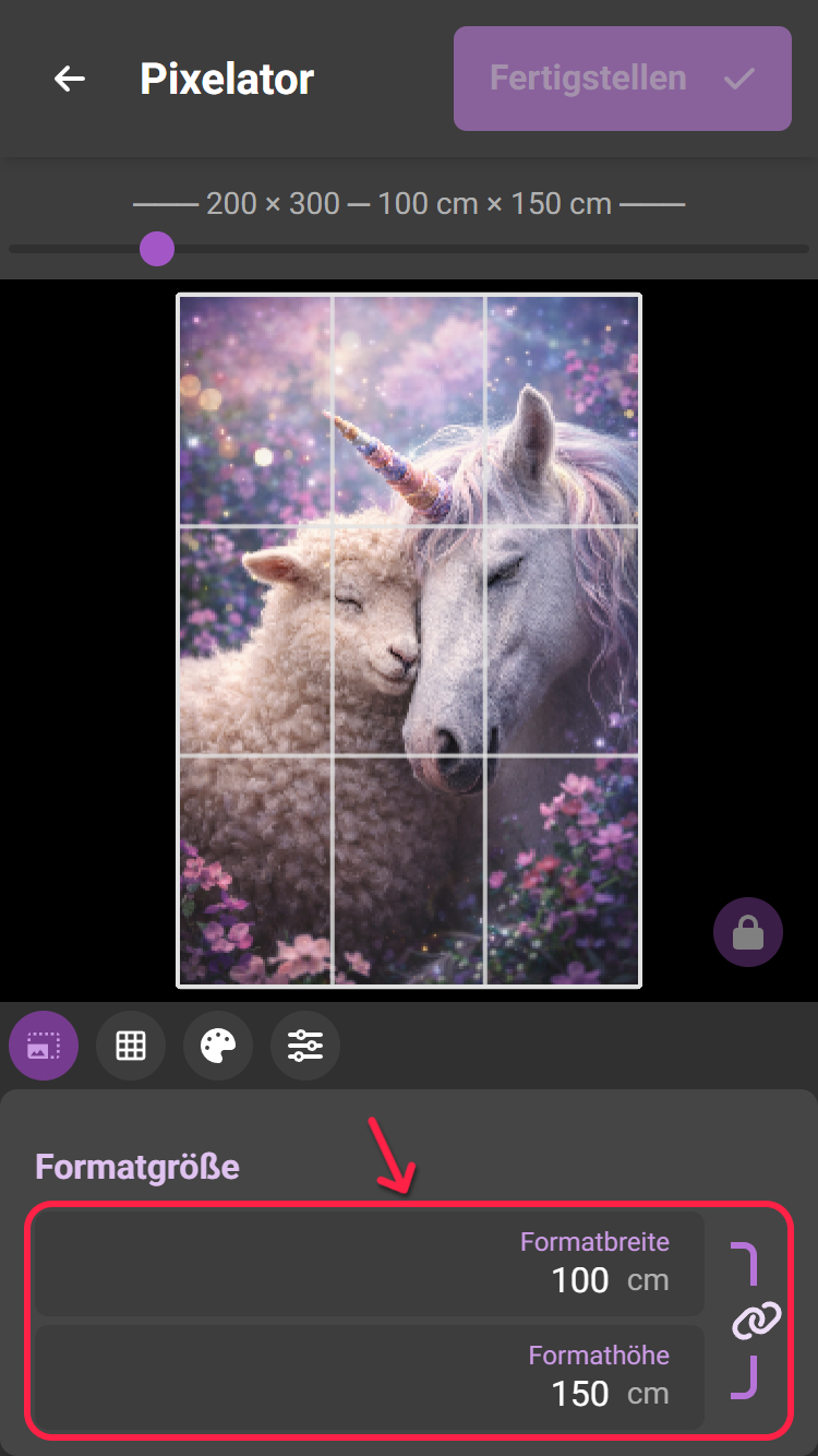 Nachdem du ein Bild ausgewählt hast kannst du zunächst dein Format eingeben.