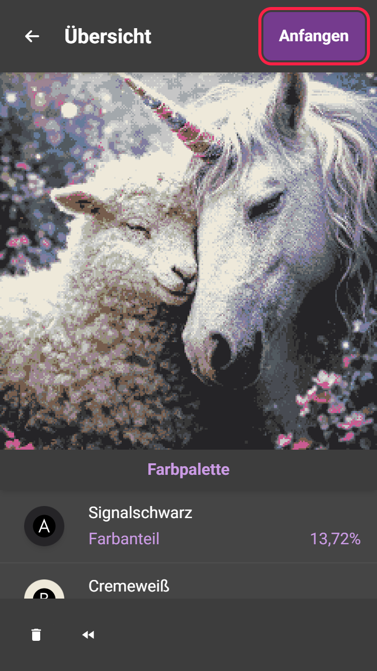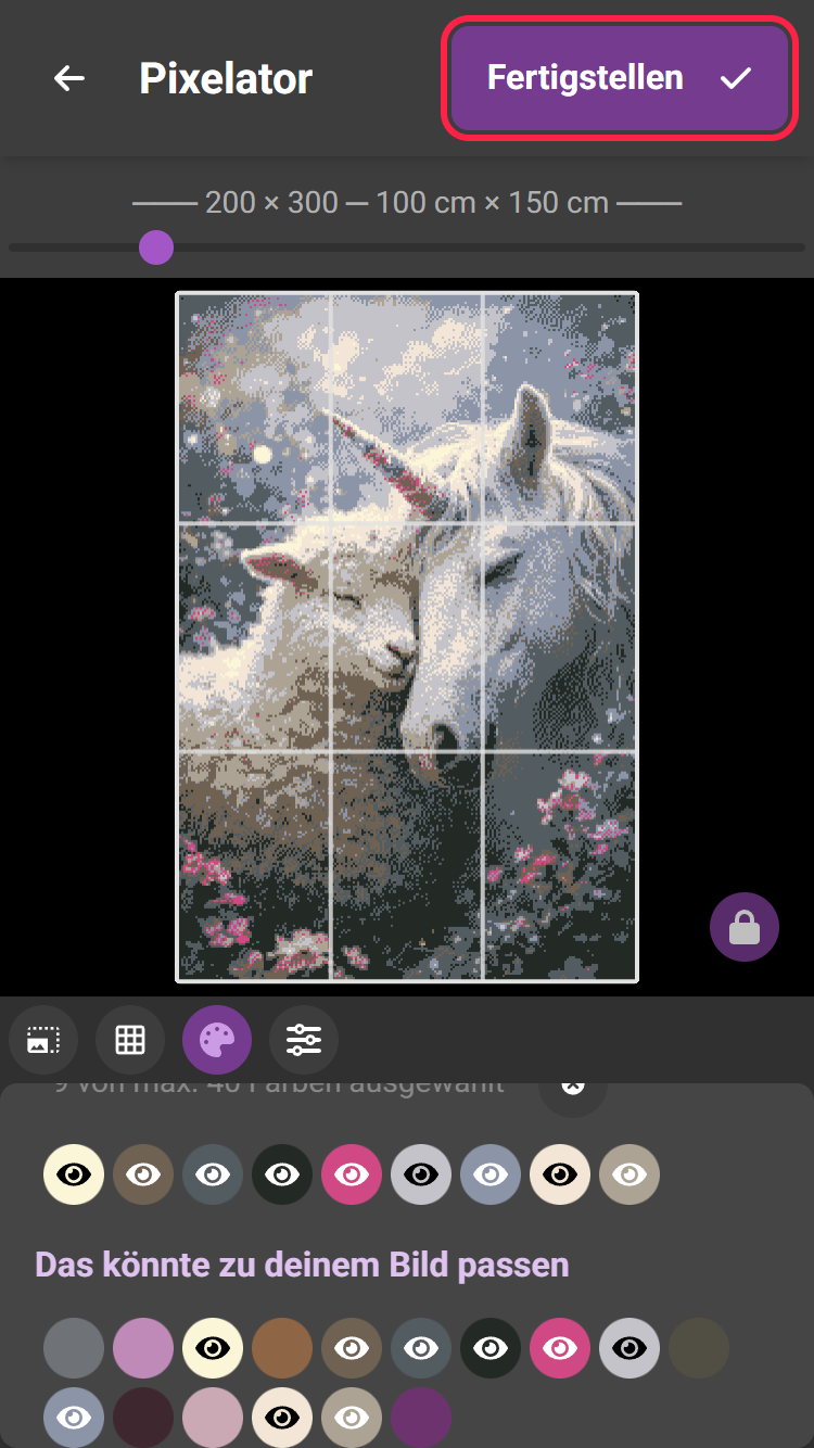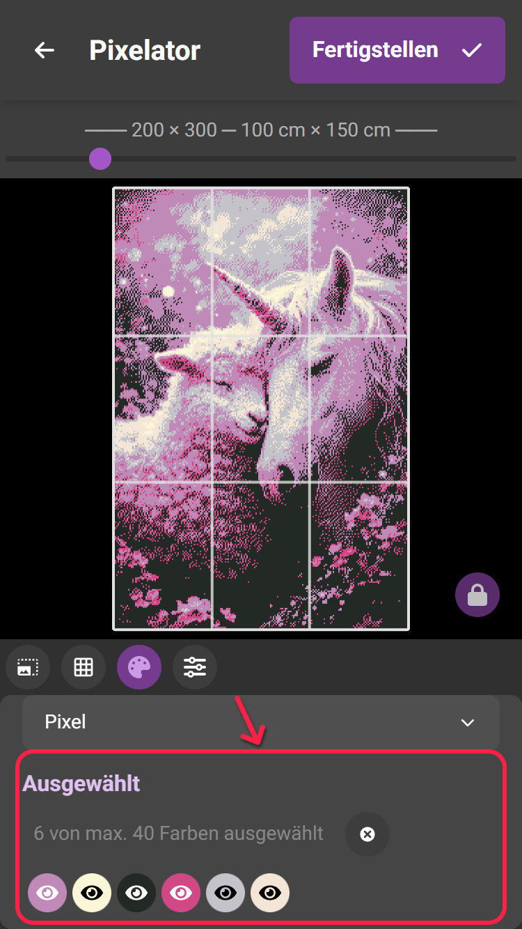 Es müssen mindestens zwei Farben ausgewählt sein, damit du das Projekt fertig stellen kannst.