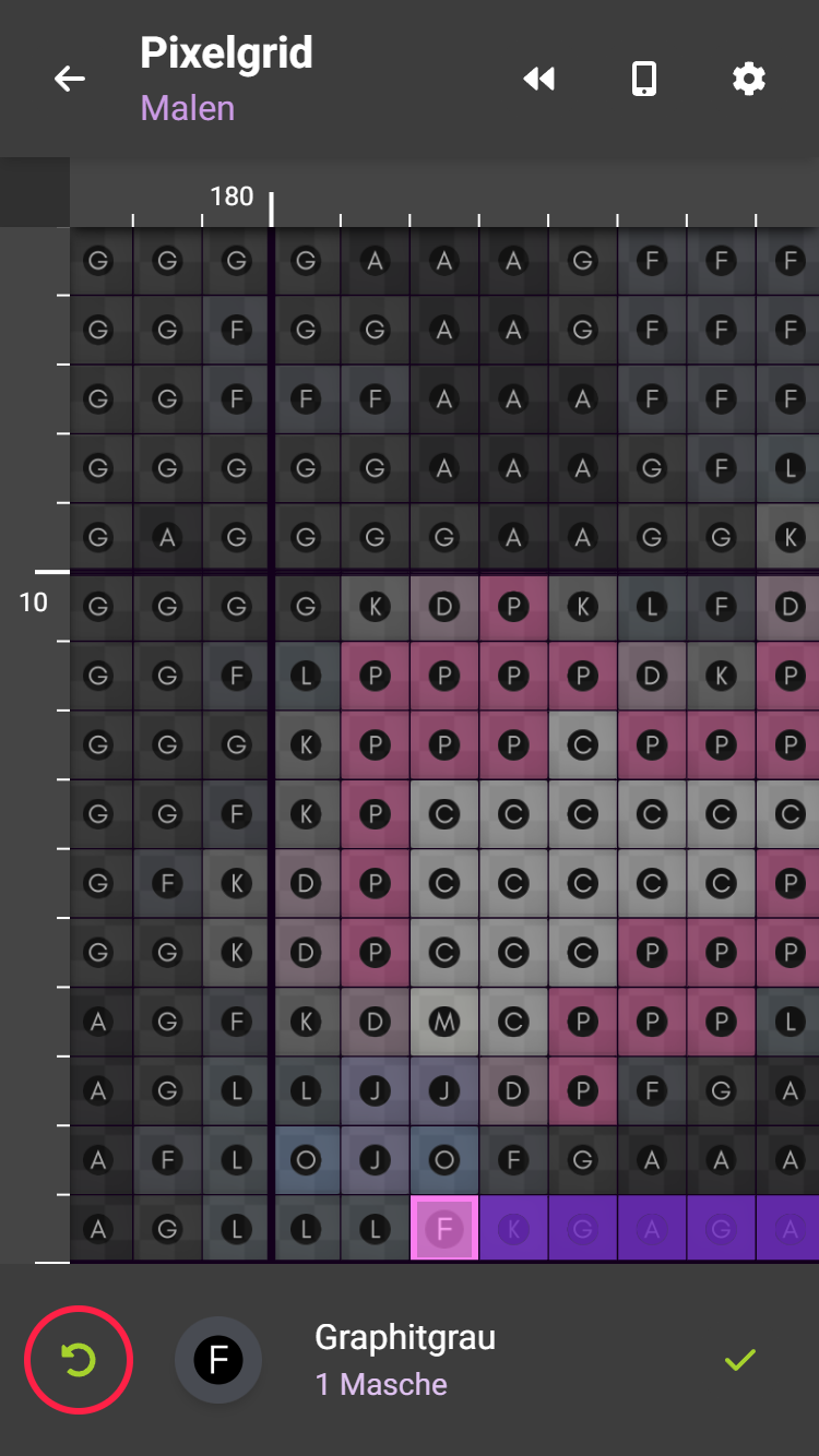 Neben dem grünen Häkchen findest du einen Pfeil. Damit kannst du bereits abgehakte Bildpunkte wieder zurücksetzen.