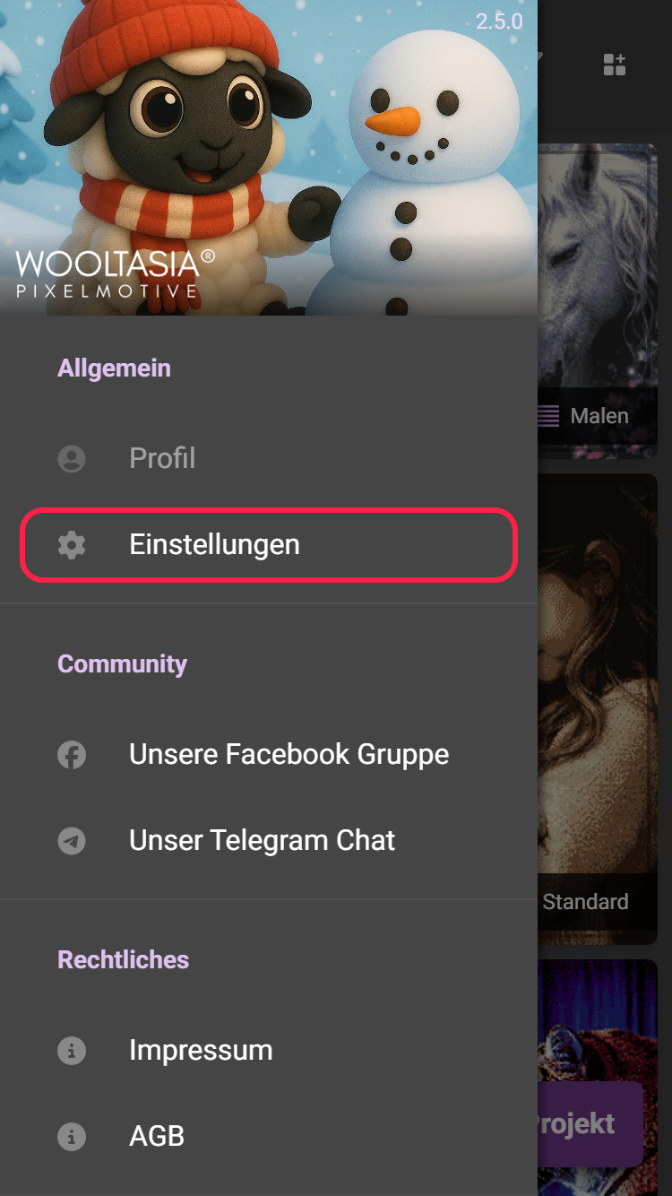 Du kannst alle Einstellungen jederzeit ändern, auch wenn dein Projekt schon läuft. Du findest sie im Seitenmenü oben links unter Einstellungen.