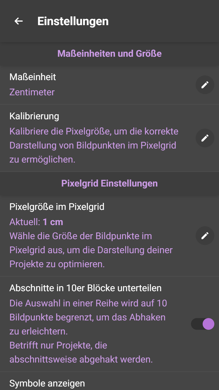 Die App rechnet dein Bild auf Basis deiner Maschenprobe um. Dabei kann es je nach Format und Garn passieren, dass das Motiv pixelig wirkt. Mit deiner Maschenprobe sagst du der App, wie viele Pixel auf 10cm × 10cm passen.