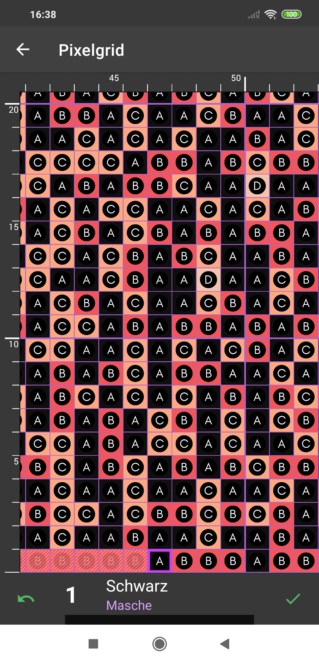 - It's not possible to display the color or appearance of ticked-off stitches differently from the appearance of unmade stitches.